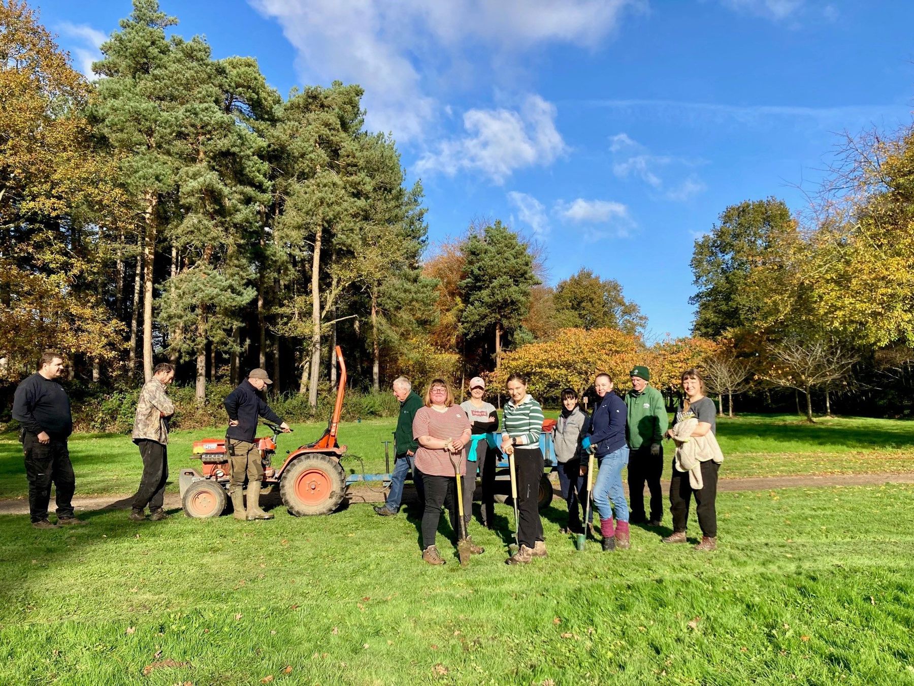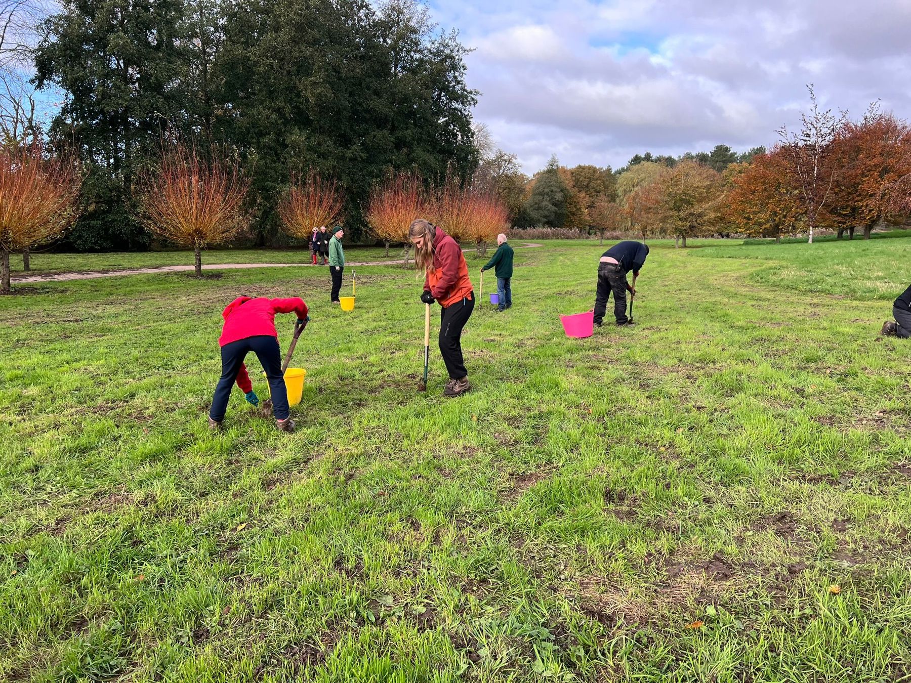 Almudena Quiralte Palomar, Kim Howell, Sarah Coupat, Megan Cowell, Amy Flint, Laura Cohen and Janneke Gilissen spent a day volunteering at Markshall Estate in Coggeshall this week, planting bulbs across the grounds in the morning and then some trees in their new Himalayan area of the Arboretum.