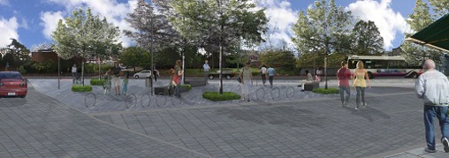 York stone paving, new tree planting and seating areas provide the user with a pleasant experience of the area.
