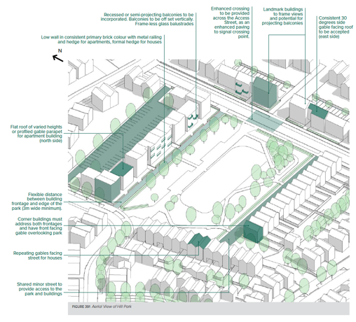 Sustainability runs through this masterplan, from ensuring active travel, ecology and sustainable drainage is supported, to providing elements of off-site construction, renewable energy, and green roofs. After commenting on the Design Codes, we have collaborated with the team to flexibly apply these to each phase to ensure the principles run like a golden thread through the development.