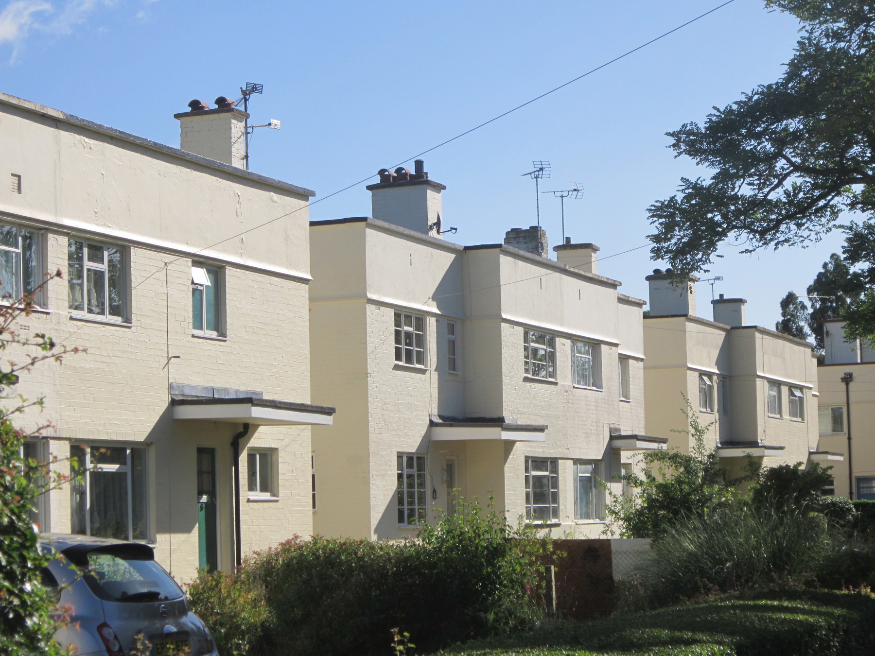 Silver End Garden Village was developed between 1926 and 1932 as a model estate for workers of the metal window manufacturing firm of Crittalls. Conceived as a showcase of modern architecture and Crittall products, the village includes some of the earliest Modern Movement houses in England and contains the only complete estate of Modern Movement houses in the country. The original village layout was designated as a Conservation Area in the 1980s to protect and enhance the historic fabric of the village, and to employ positive measures to ensure building preservation.